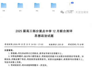 高考学子们马上迎来寒假,但是高考时间是固定的,不会延后。高考学子们利用寒假在拼一次吧! 你不努力,那就是在落后。现在时间已经到2025年1月,距离高考还有6个月的时间。除寒假,也就是5个月。春节到来,全国热热闹闹过春节,但是高三的学子一定要挺住,高考算是人生中最公平的事情了,错过了就后悔。小编为了广大2025年参加高考的学生准备了一份高考资料合集。包括2025年8省联考试卷(接近于高考试卷)、高考考点总结,基础知识巩固,名校笔记等。 资源小编会持续更新。
